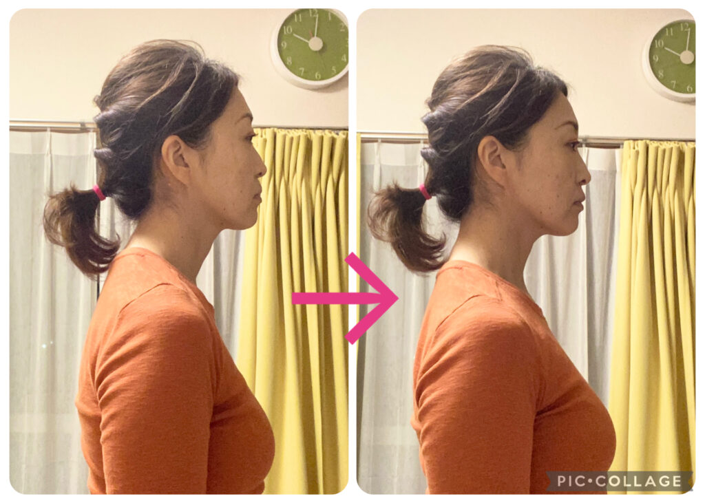 頭が体幹の真上に戻り、首が伸び、背筋がスッと立っているのがわかりますよね。